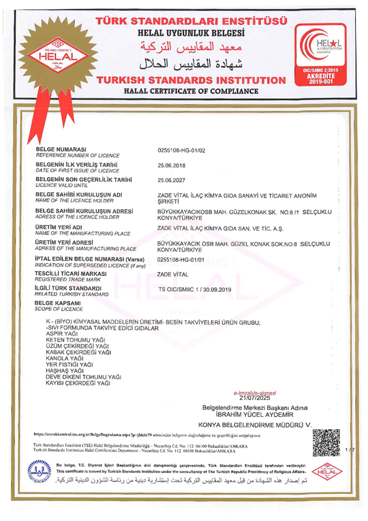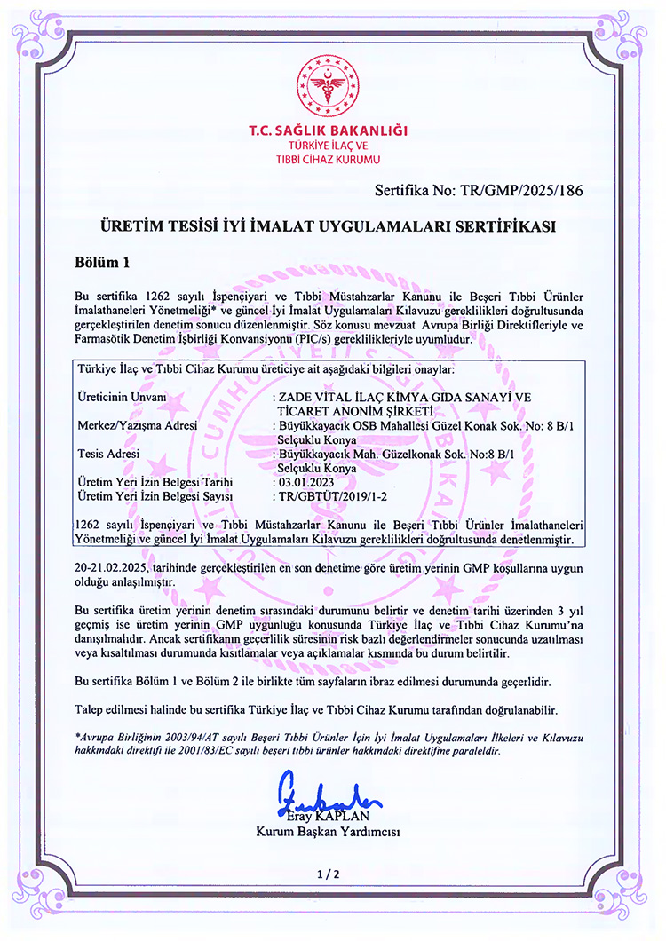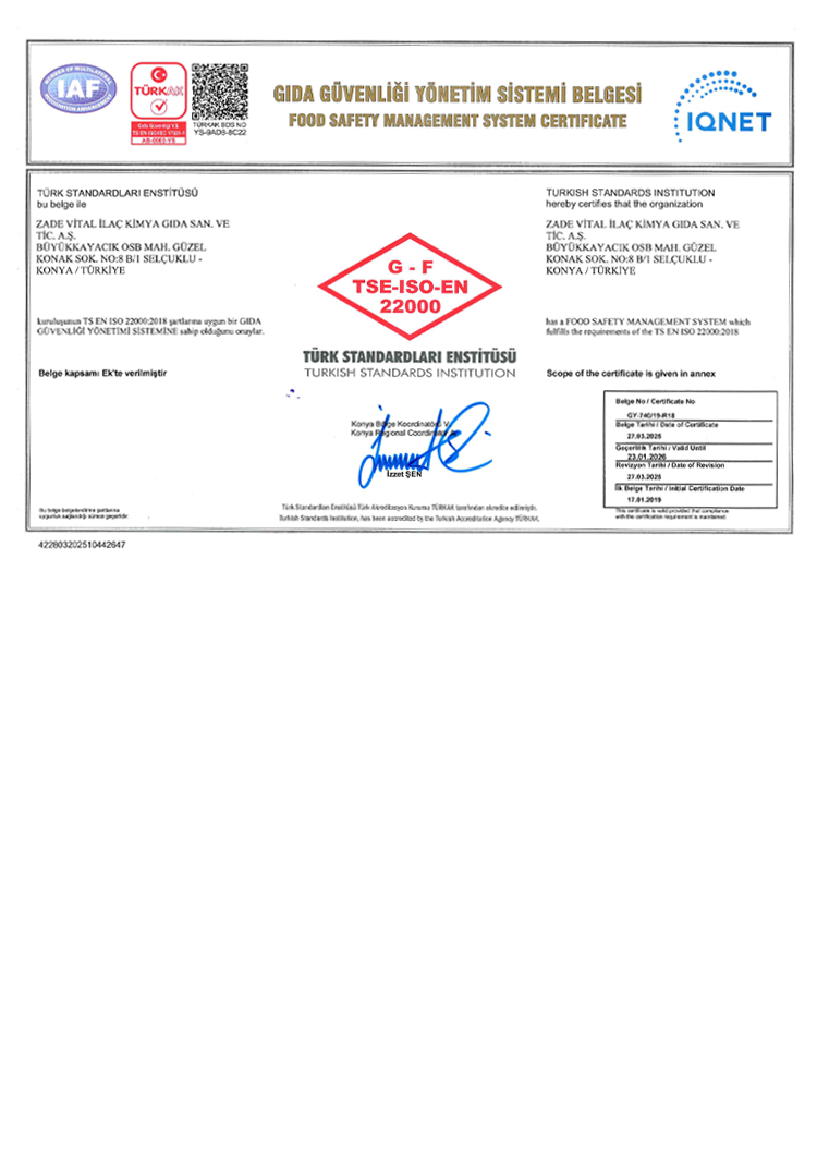 Hammadde ve Üretim Sertifikaları - Vitafenix